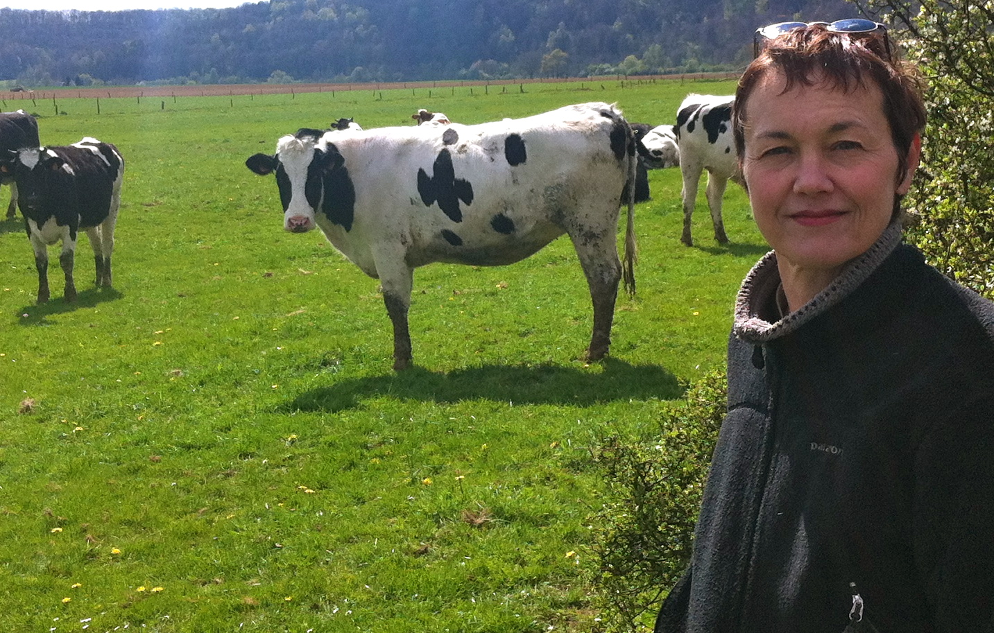 The river snakes through its valley, twisting and turning in long lazy esses with high hills on both sides, hills covered in pastures sprinkled with cows, cows and more cows. Every herd has at least one member who is fascinated by the barge, watching our slow passage. One herd yesterday galloped along, pacing us until stopped by a fence. Others run away from us. Most ignore us.