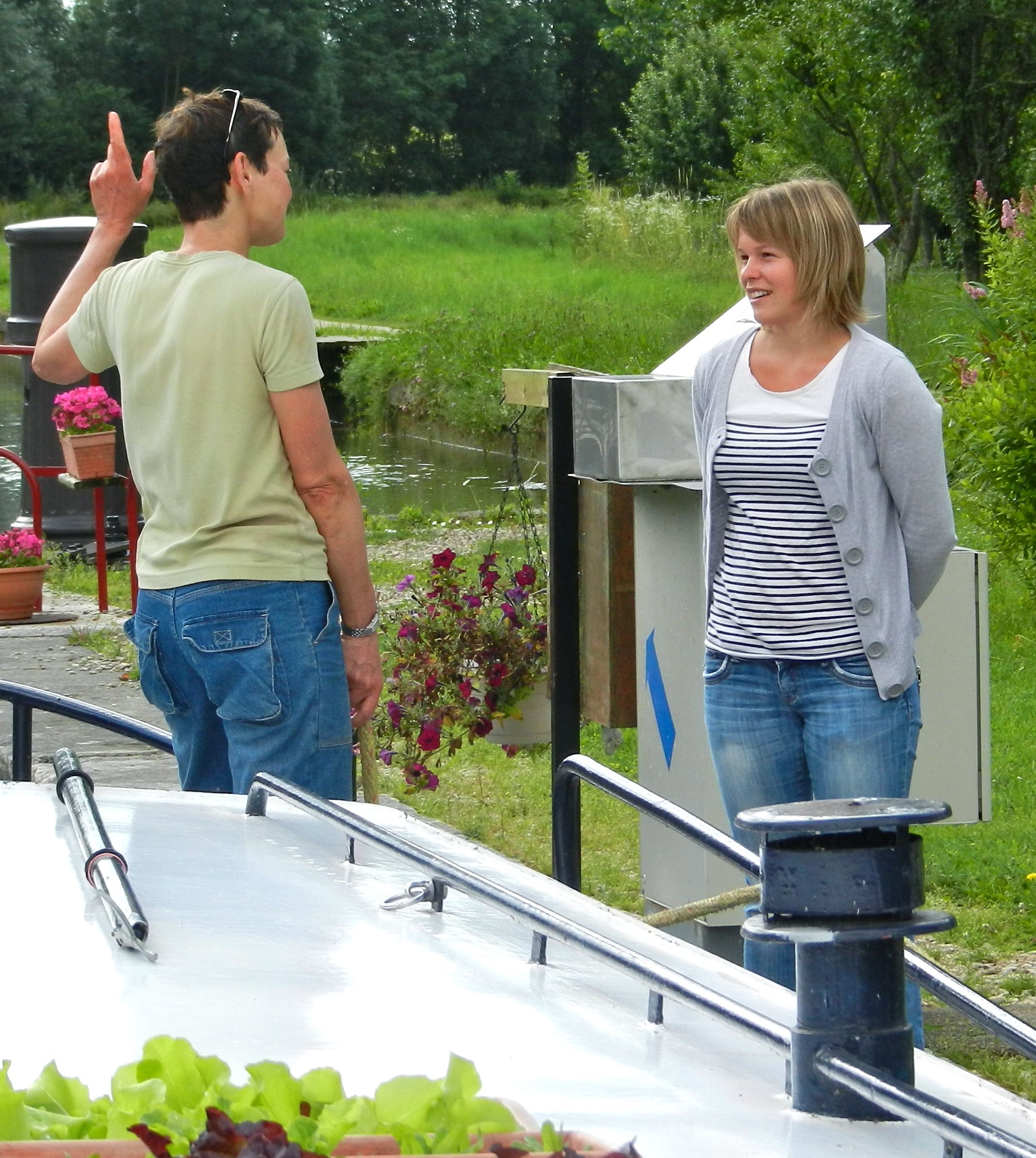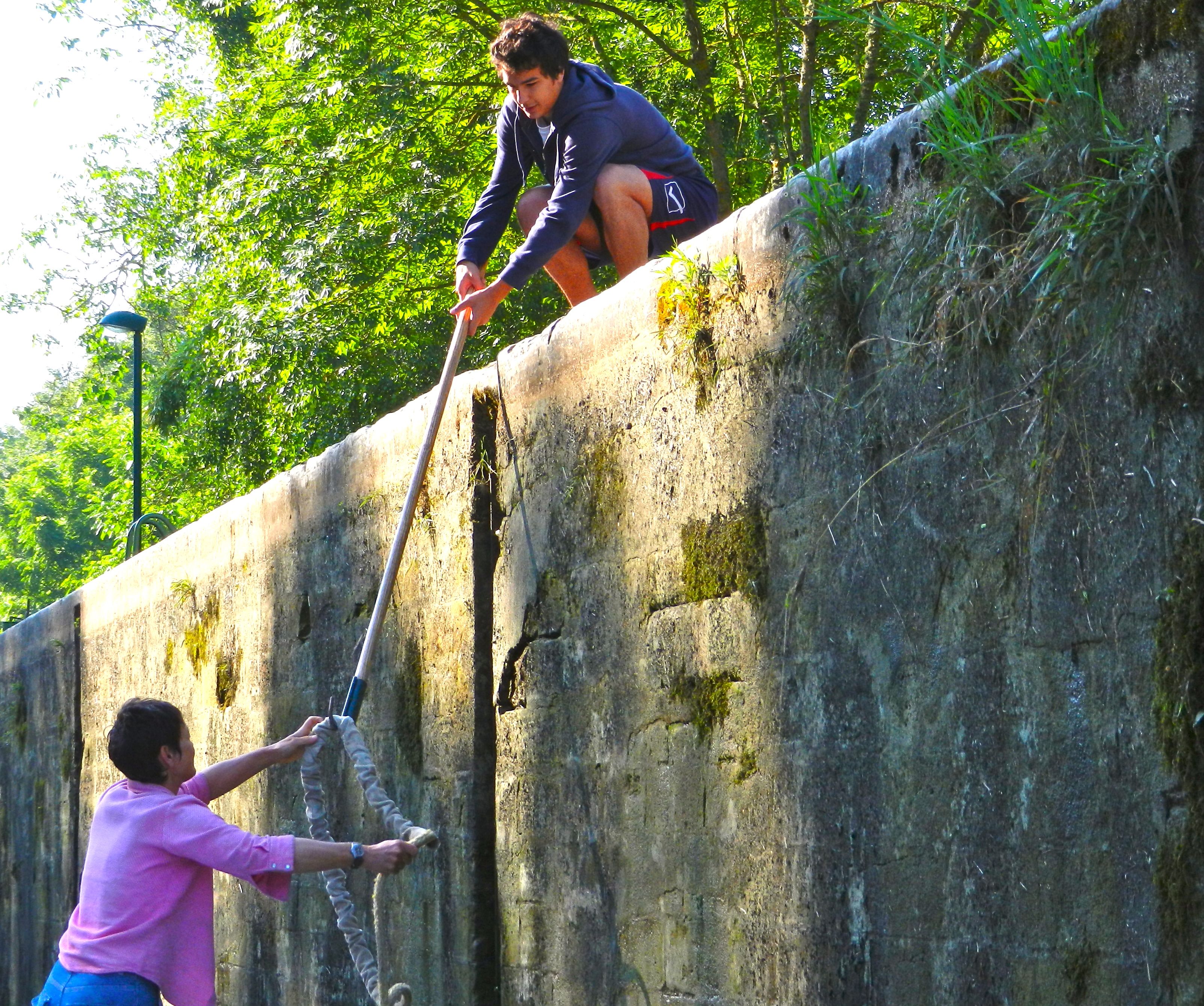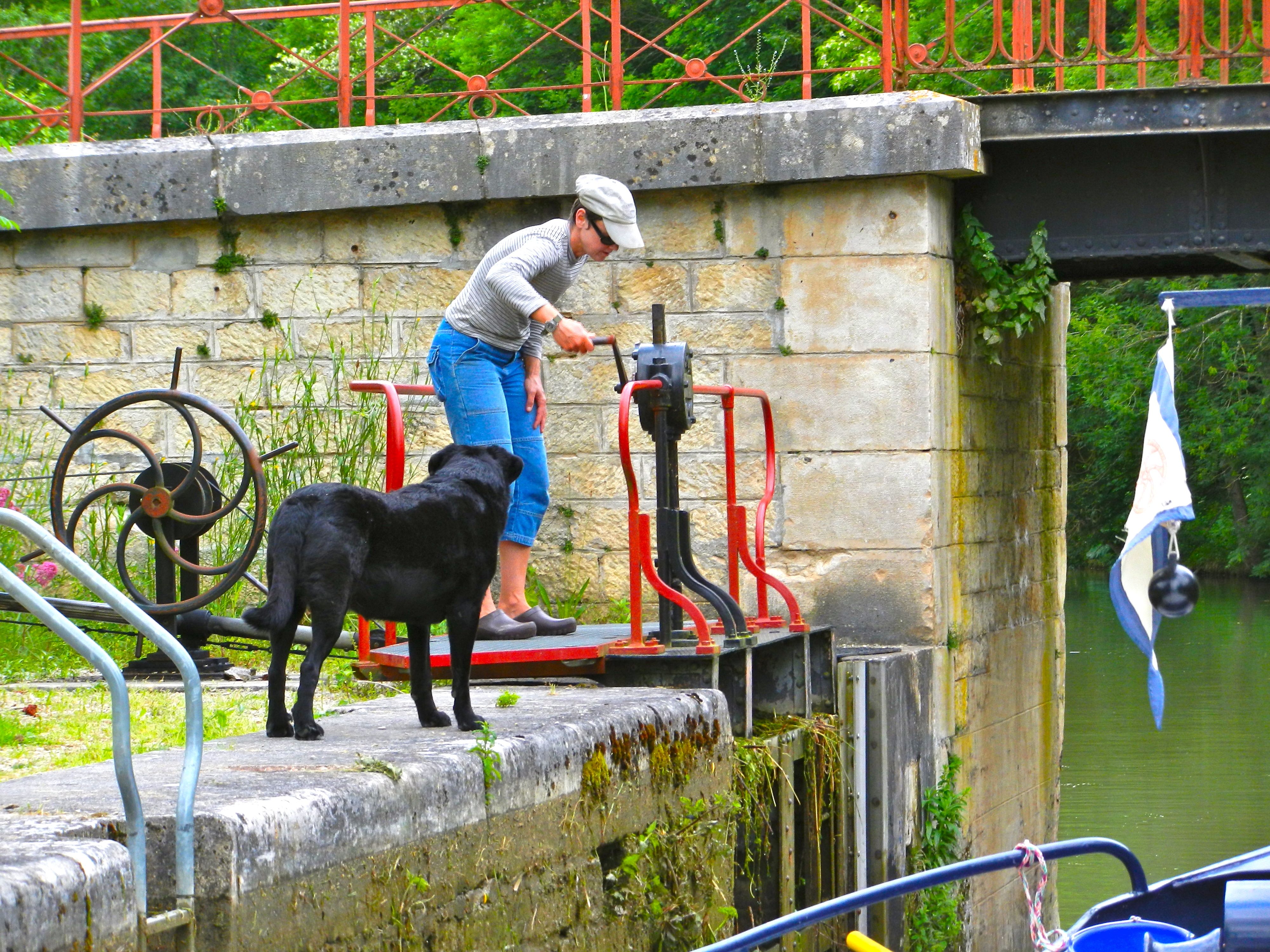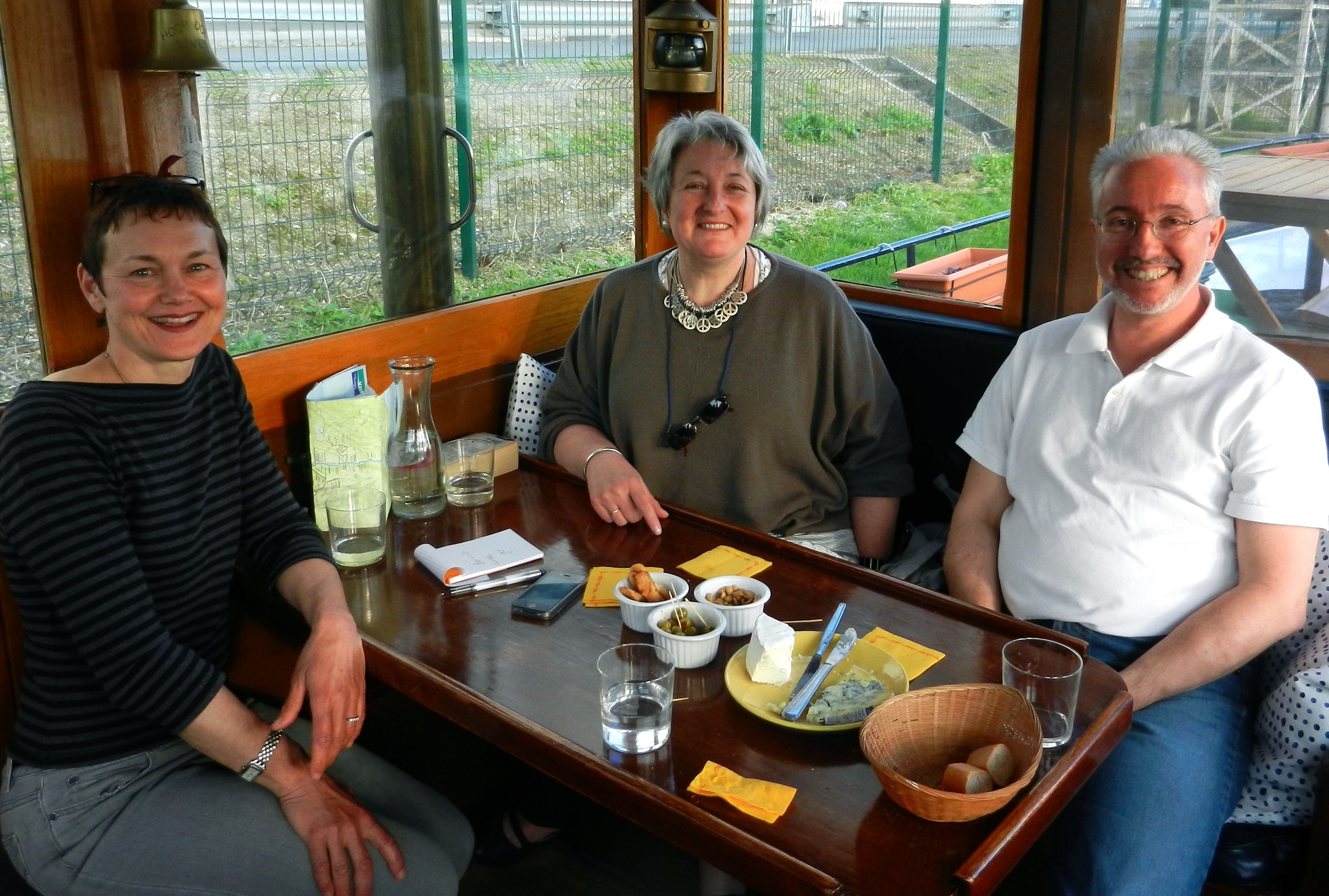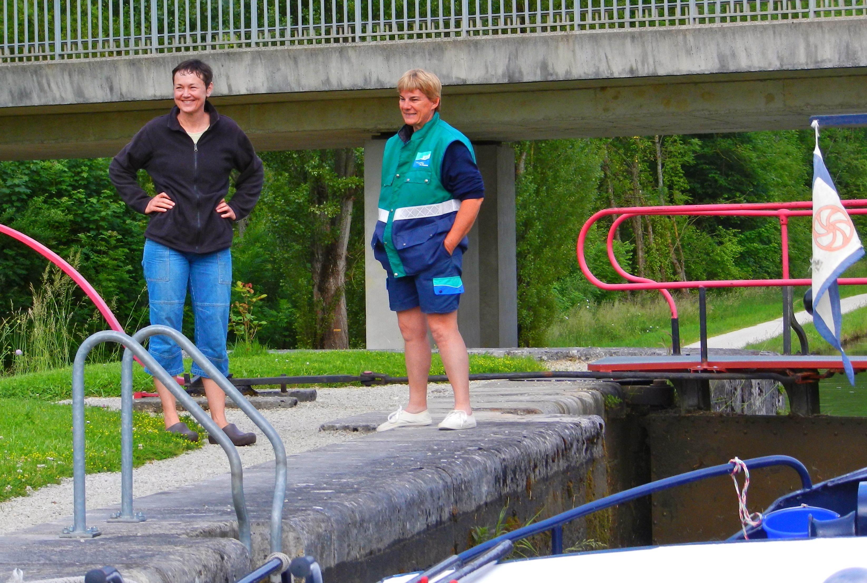 First, the cohort from VNF, the Voies Navigables de France, the government agency that operates the 8,000 kilometers (5,000 miles) of navigable rivers and canals. We passed through 860 locks, most had a resident or itinerant lock keeper, an eclusier. These patient people were Sandra’s language victims as she chatted about their work, their studies or just life in general as locks slowly filled and emptied.